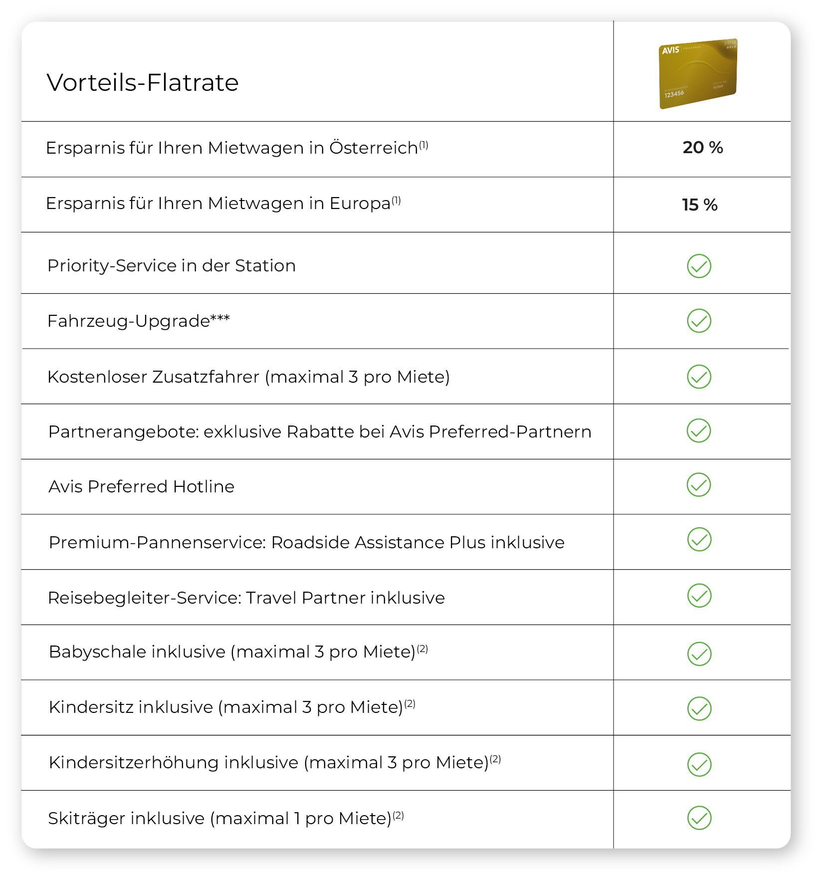 Die angegebenen Avis Preferred-Vorteile gehören zu einem
